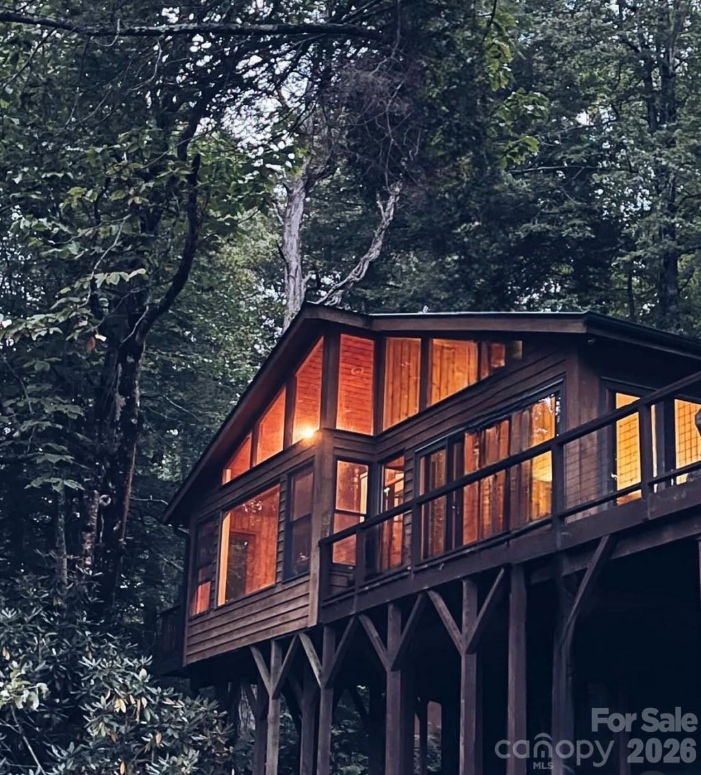 Treehouse in the Mountains ? Private Oasis with Water view & Calming CreekTucked away in the wooded hills of Spruce Pine, this one-of-a-kind mountain retreat is unlike anything on the market. Part treehouse fantasy, part peaceful sanctuary ? it's the kind of place you arrive through a private driveway lined with rhododendrons and immediately exhale.Wake up to panoramic views of the water and creek from your primary bedroom, then step out onto the Juliet balcony to breathe in the mountain air. The sun-drenched sunroom is a showstopper on its own ? sliding glass doors open the entire room to nature, blurring the line between inside and out. The room frames those same primary views all day long, giving you a front-row seat to nature with a coffee in hand.The expansive deck stretches out before you, overlooking the water ? perfect for lounging on the outdoor sofa with a book, sunset dinners, or simply doing nothing. When the evening cools, gather around the dedicated fire pit and picnic area and let the sound of the creek set the mood.It's the kind of space that makes you forget what time it is.Inside, a classic stone wood-burning fireplace anchors the living space ? warm, cozy, and exactly what a mountain home should feel like. The home comes fully furnished, including a canoe, indoor and outdoor furniture, and a firepit table. Just bring yourself.The property is a complete compound:¢ Extra separate guest cabin with electricity ? perfect for visitors or storage¢ Large shed stocked with tools and a lawn mower¢ Private platform overlooking the water and creek ? ideal for yoga, an outdoor sauna, or a future studio¢ Upstairs nook for storage or an additional sleeping spaceAnd the location? Unbeatable. You're just minutes from waterfall trails, and a short drive to charming Little Switzerland ? with its local restaurant, general store, bookshop, and café. All the character of mountain living, none of the isolation.Live here full time, escape on weekends, or unlock serious Airbnb income ? this property checks every box for the short-term rental market. Guests book these experiences repeatedly.This is your private corner of the Blue Ridge Mountains.Serenity isn't a feature. It's the whole point.
